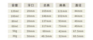 Capacity 60ml 80ml 100ml 120ml 30g 50g
